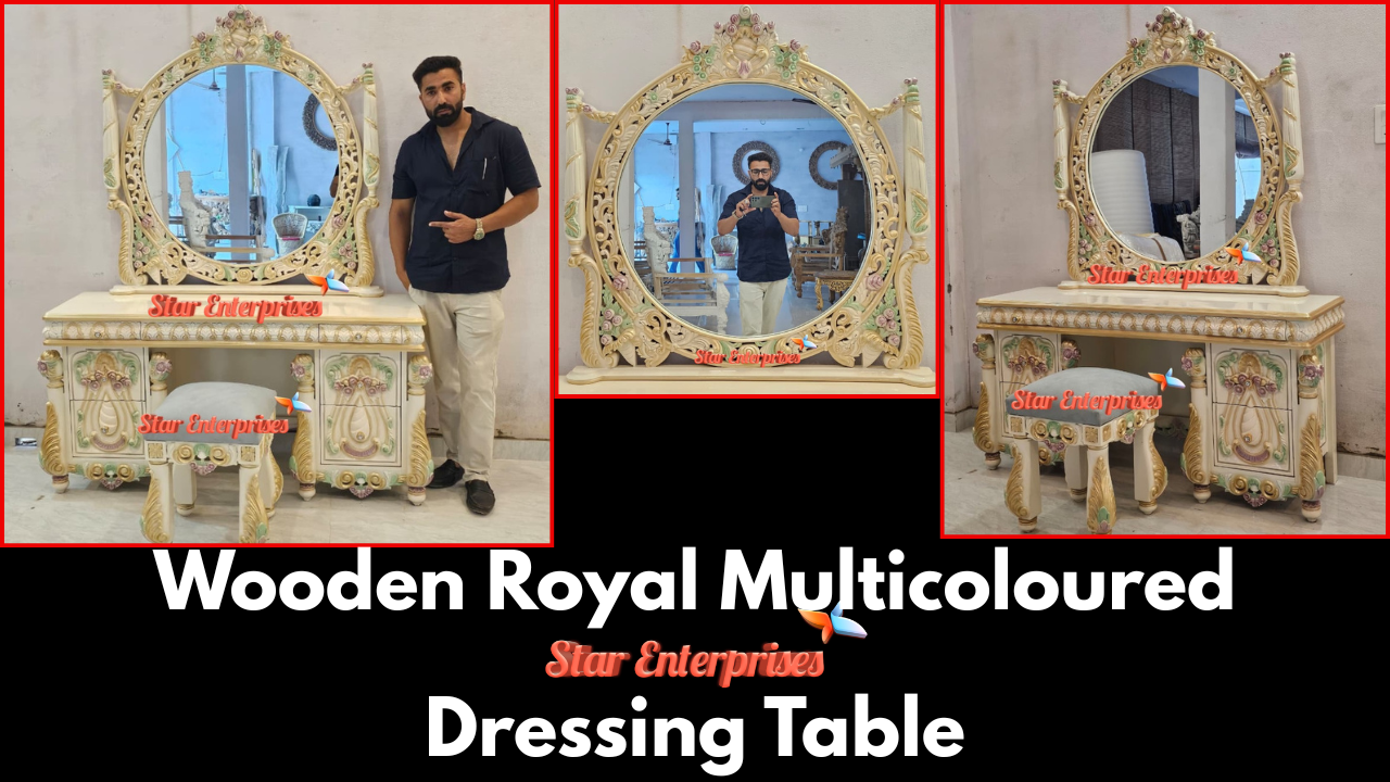 An Ideal combination of Art, Luxury and Usability by Star Enterprises:- Furniture in the modern luxury interiors is not a mere utility, rather it is a piece of royalty, workmanship and eternal beauty. The Wooded Royal Multicoloured Dressing Table by Star Enterprises Furniture is a real masterpiece that depicts the reflection of the traditional view of art with the elements of modern luxury.