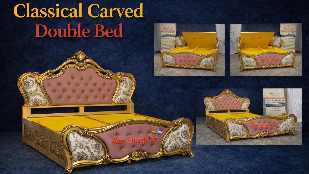 Conclusion:- The Classical Carved Double Bed is not only a piece of furniture but it is also a symbol of luxury, tradition and comfort. Designed with the finest teak wood, antique gold polish, beautiful upholding of the bed using hand carving, soft tufted upholstery and convenient hydraulic storage, the bed is set to take your standards of living to the royal level. Introduce the classic beauty and make your bedroom look like a palace.