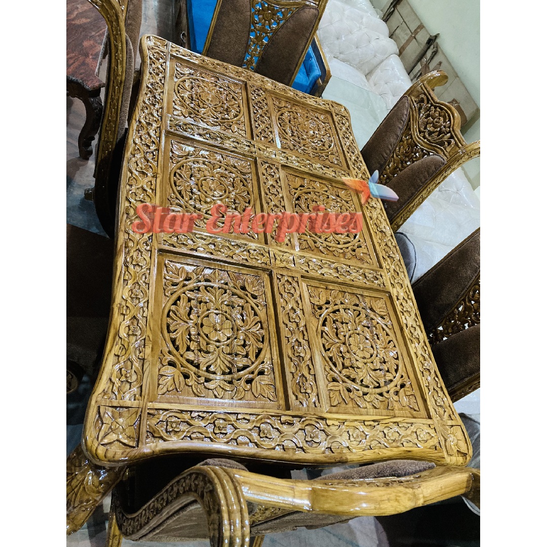 Tags:- Antique Engraving Dining Set, Royal Carved Dining Set, Teak Wood Engraving Dining Set