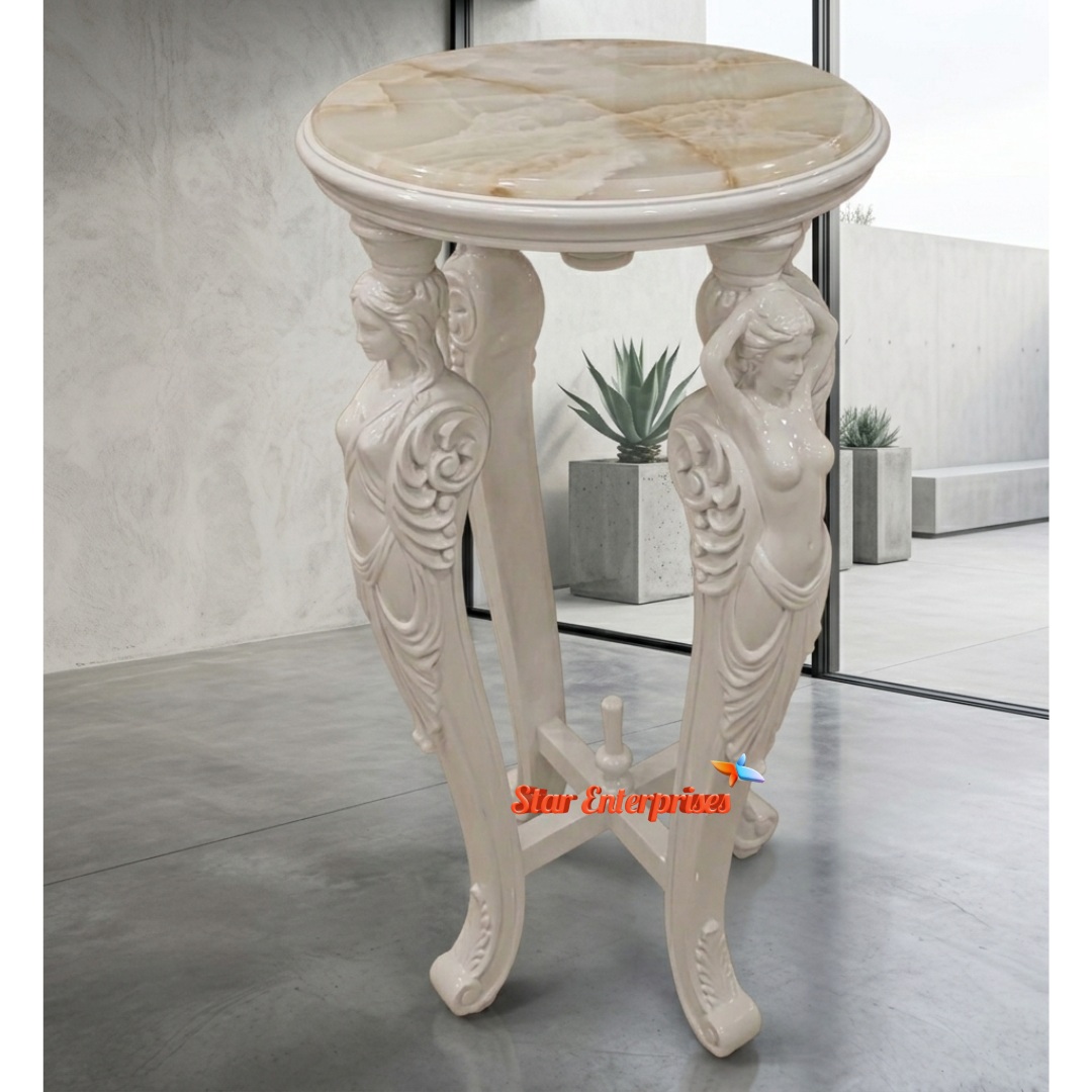 The Star Enterprises European Style Decor Table is an amazing combination of artistic artistry and high-end design. This decorative table is made of high quality teak wood that was crafted by experts to describe the European style of timelessness. The table is made of a premium onyx marble surface which is well finished and displays natural designs, thus making it look sophisticated.