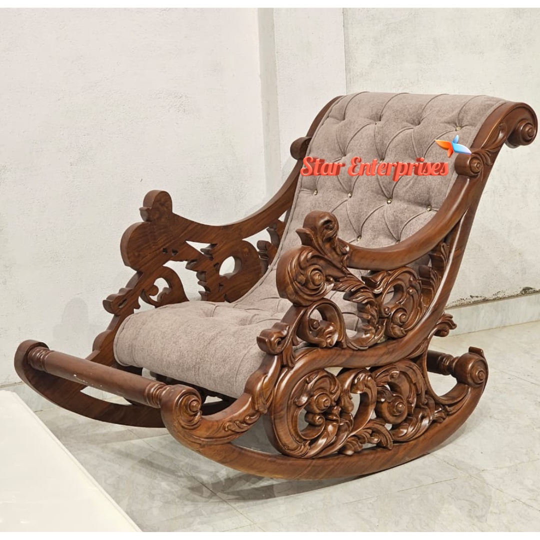The Premium Teak Wood Rocking Chair by Star Enterprises joins luxury with comfy relaxation in a permanent edition. The product combines professional carving of premium teak wood with extravagant designs on its top to demonstrate classic handcrafting expertise. Its walnut-shiny finishing showcases the vintage charm of this premium teak wood chair through its exquisite texture. This relaxing chair is made of very soft fabric, which makes you feel very relaxed whenever you are tired.