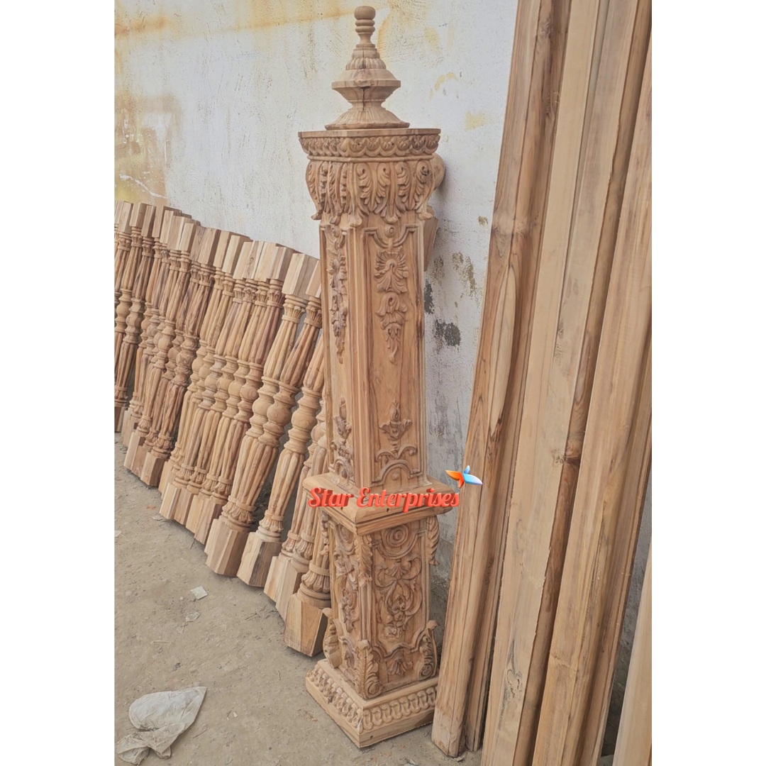 The Solid Teak Wood Handcrafted Pillars of Star Enterprises demonstrate a high level of masterwork and beauty that stands the test of time. These pillars are made of high quality teak wood to enhance a grand and luxurious appearance of the stairs, balconies and interiors. All pillars are adorned with beautiful turning and delicate carving on the hands of experienced workers in using the antique art of woodworking.