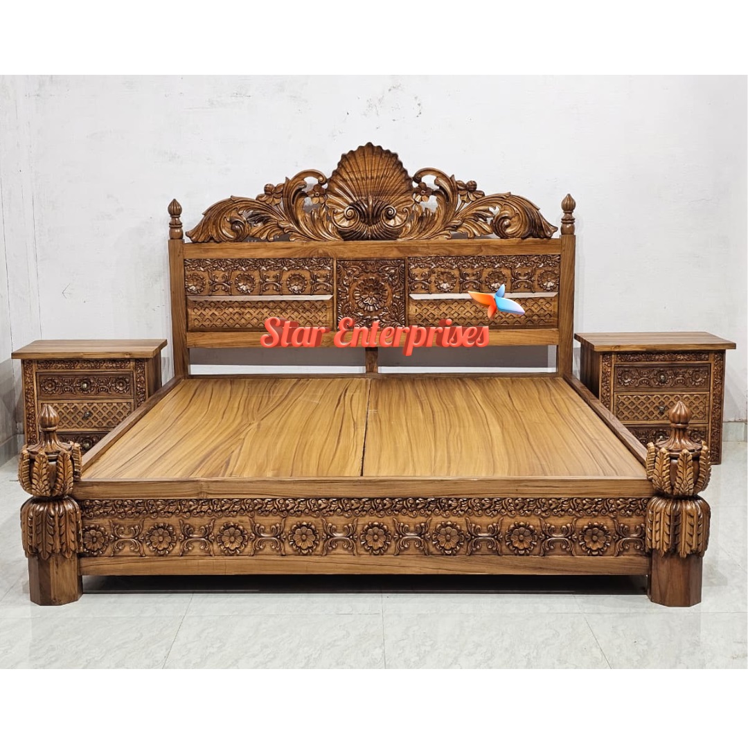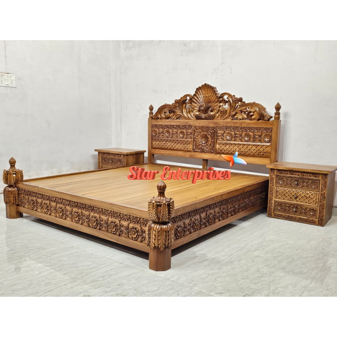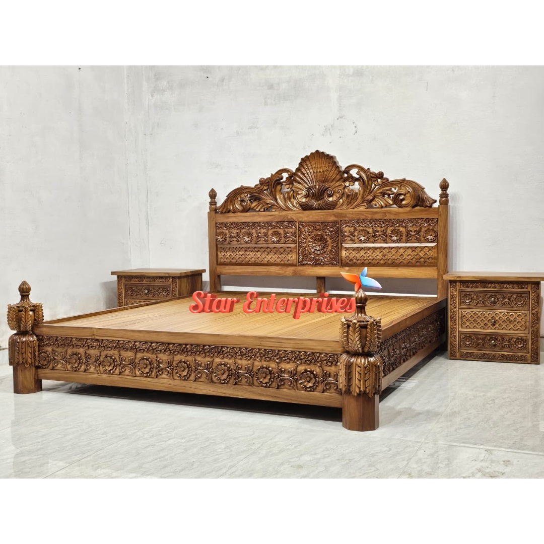 Star Enterprises Teak Wood Antique Carved Double Bed BD-0156