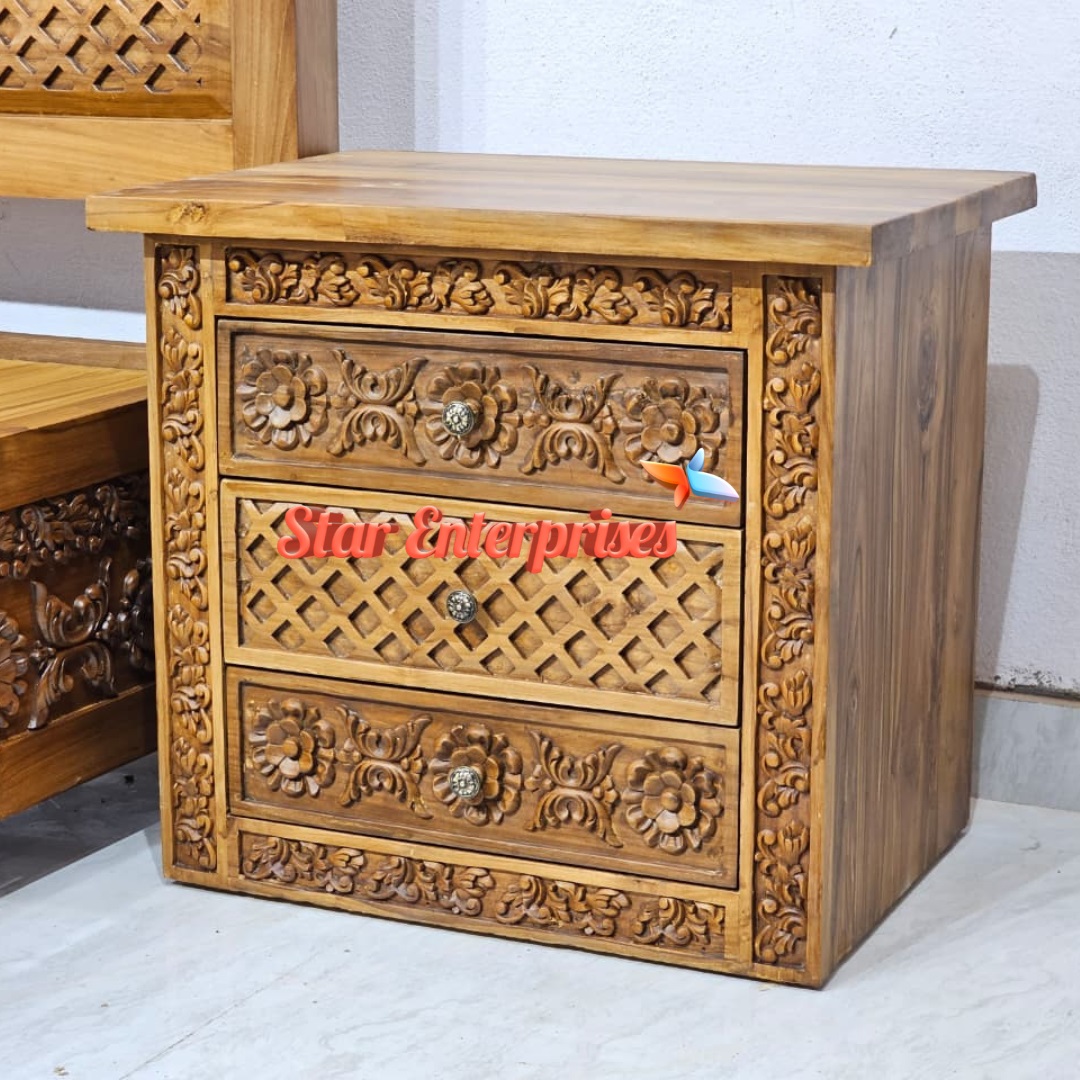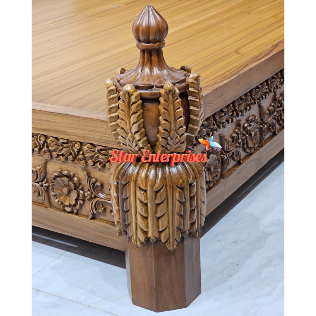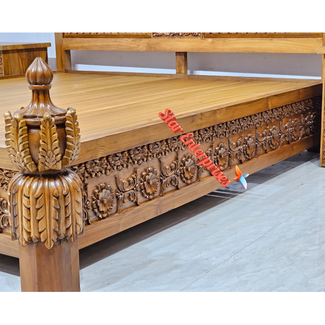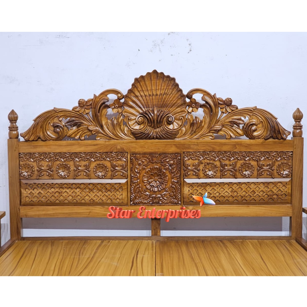 Star Enterprises Teak Wood Antique Carved Double Bed BD-0156
