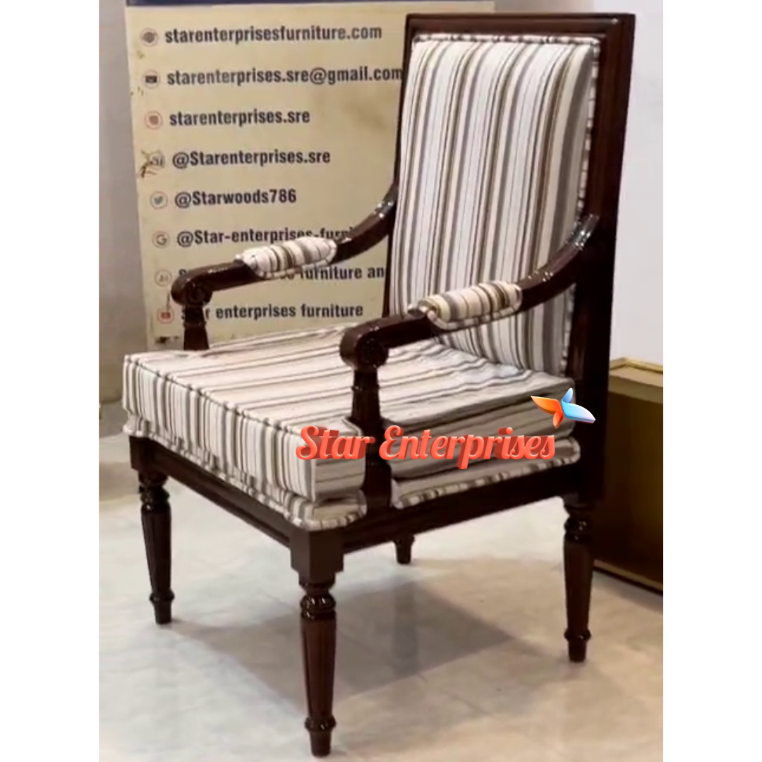 Star Enterprises Teak Wood Antique Chair Design is an ideal illustration of classic beauty and strength. This chair is made out of high quality teak wood and is made to be used over a long period of time without exhausting its beauty. The chair is polished in high gloss walnut giving it the natural grain of the wood and the warm antique look.