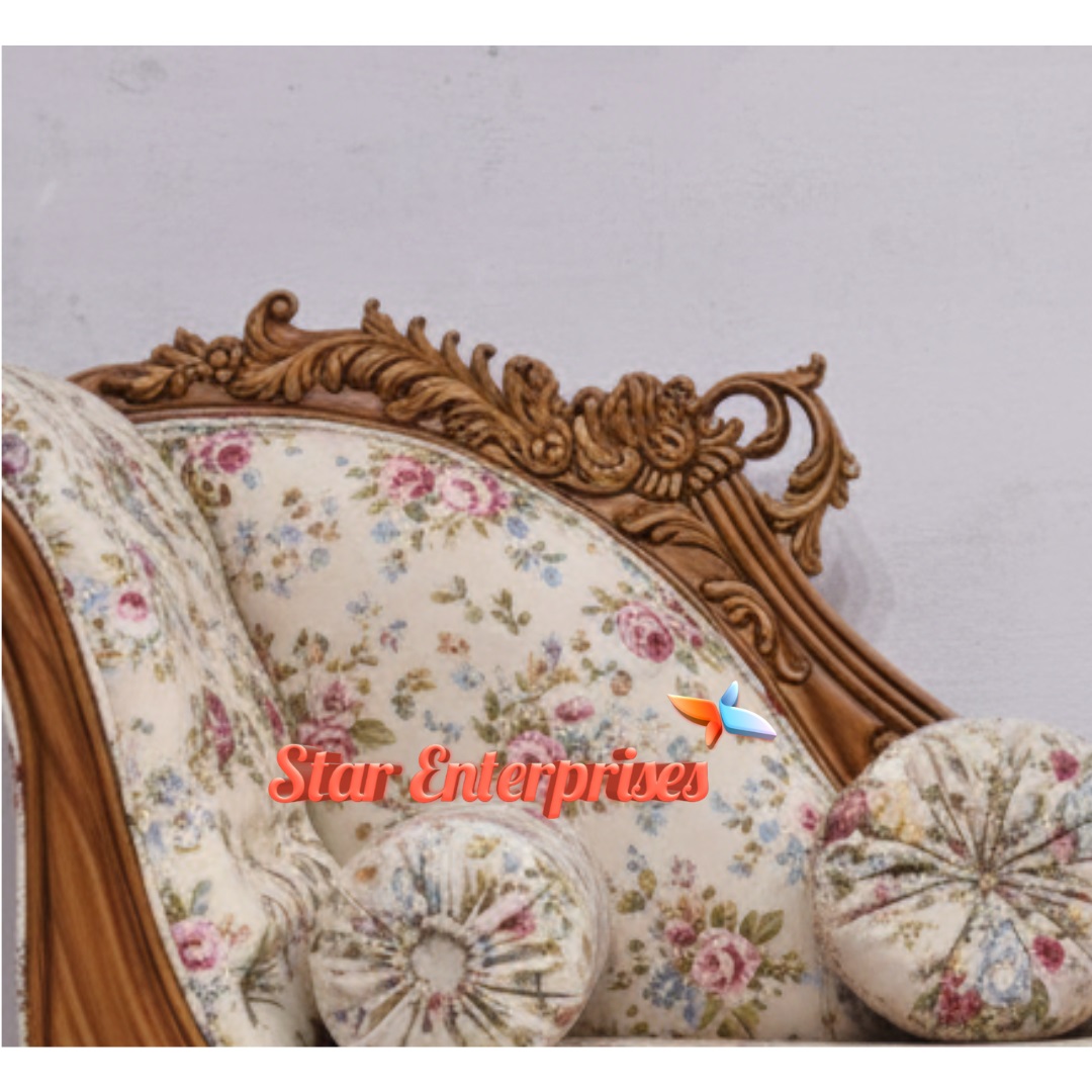 The couch is upholstered in great PU floral print material which gives it royal and refreshing feeling. The plush comfort and grandeur of the seat and backrest are enhanced by the quaint design of the seat. This handcrafted couch is made to fit perfectly in the classic interiors setting and incorporates luxury, comfort and durability and makes it an ideal focal point in the living rooms, lounges or royal decor settings that require elegance and opulence in every detail.