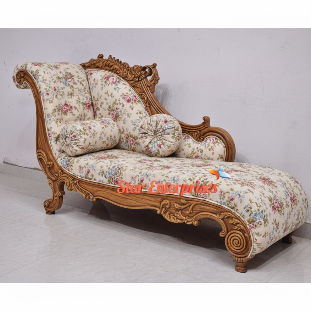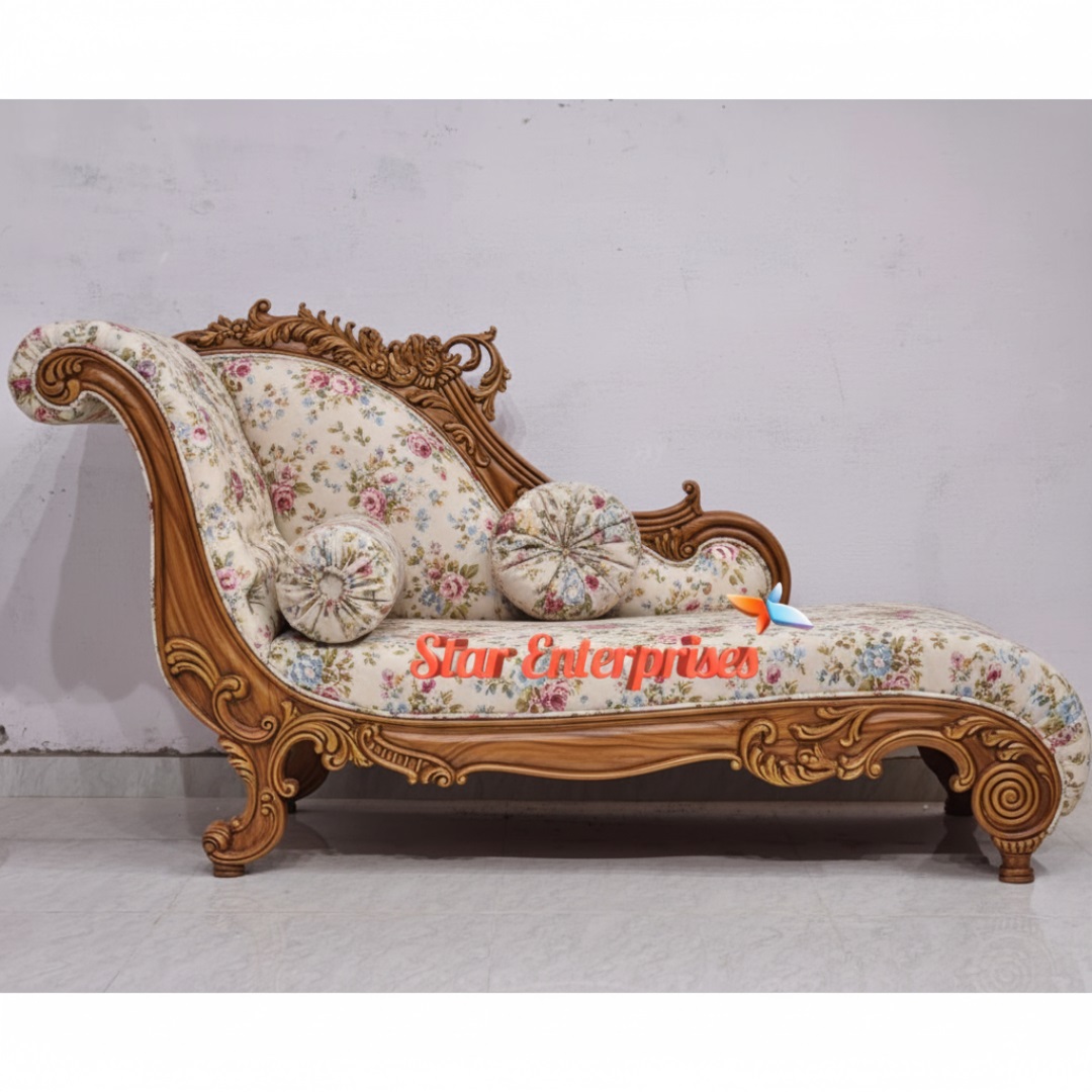Star Enterprises has developed Teak Wood Antique Chaise Lounge, which is a masterpiece of antique work, the handmade superior teak wooden furniture was prepared in such a way that it can be strong and beautiful at the same time. This is a luxurious couch, which is natural wood finish, which adds more royal appeal and detailing to it. The design features excellent hand carving by the experienced artists and this demands ancient artistry and refined taste.