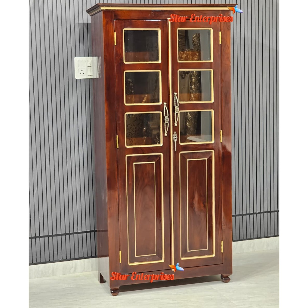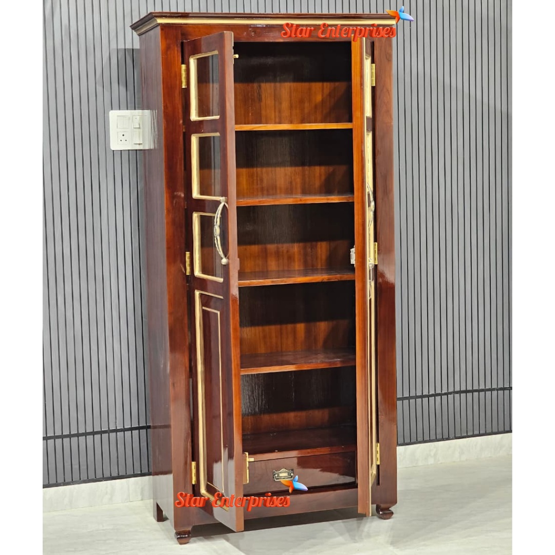 The doors are characterized by a fiberglass work that can never be broken and it offers extra safety and durability with at the same time a very classy appearance. The bookshelf has been finished in a high-grade walnut finishing with a slight tint of gold which makes the shelf look elegant and cozy. Its sleek design and high-quality finish make it look more elegant and useful as a decorative and practical addition to a study room or office or even an apartment, which would be the most beautiful in terms of decoration and practicality.