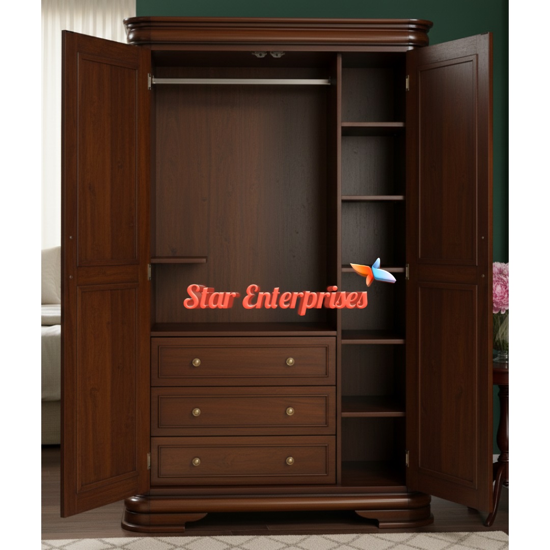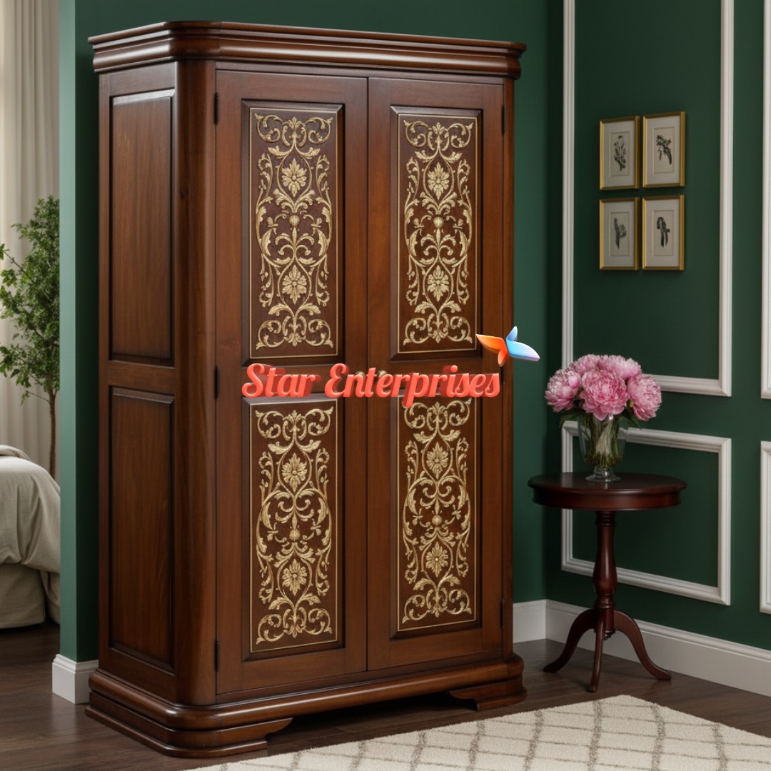 It is an ideal combination of royal design and storage use of this Wooded Antique Almirah by Star Enterprises. It is made of fine grade solid wood and polished in deep dark brown which adds traditional value to it. The outer doors are decorated with valuable hand carved flower and traditional designs with finely carved golden hand-work to give it a very refined appearance.