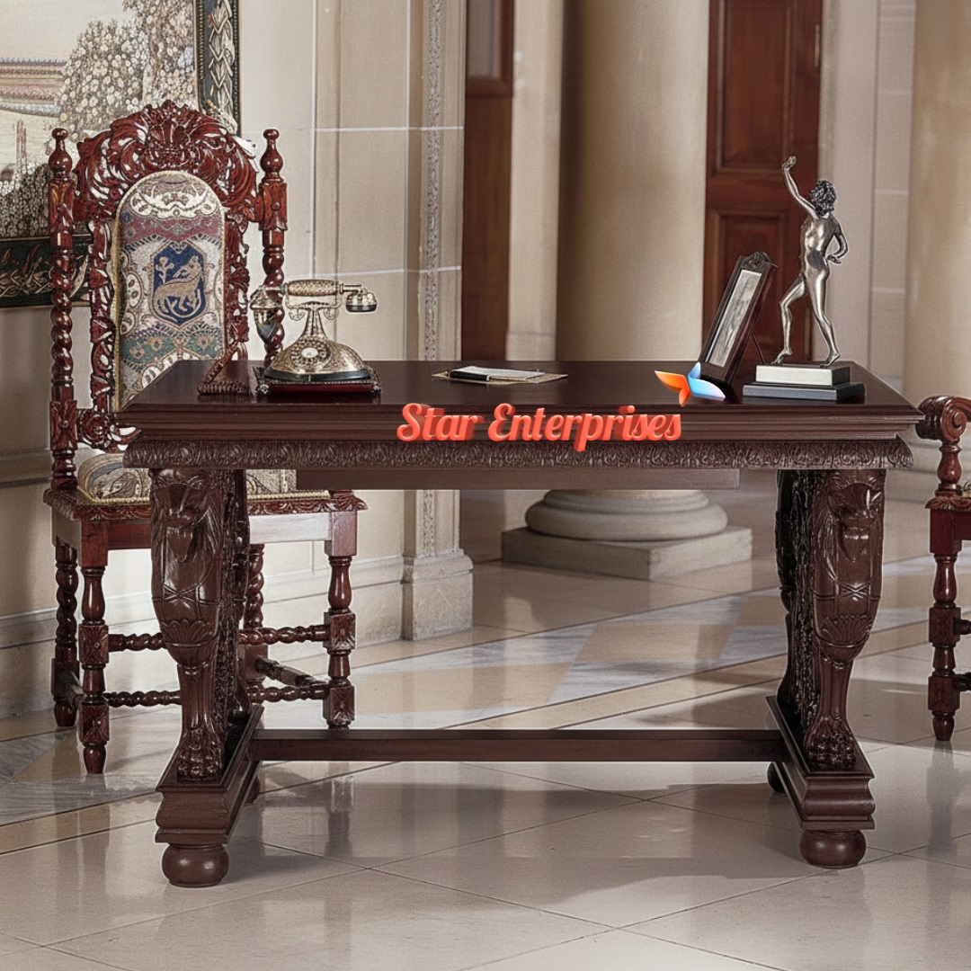 Star Enterprises Wooden Antique Carved Office Desk OFD-024