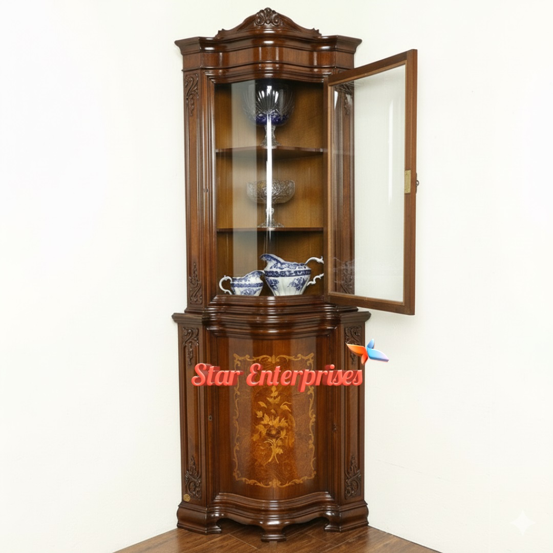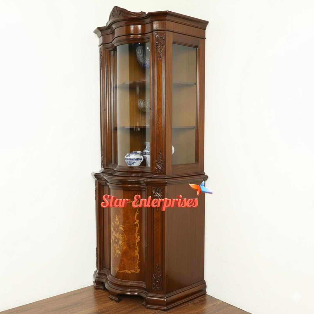 The glass display cabinet enables the displaying of crockery and pieces of decor in a beautiful manner whereas the lower storage place keeps the important things neatly stored. Its antique smooth walnut polish finish and inlay workflow give it the nature of the piece, which fits perfectly in the traditional living and dining rooms. The most advanced furniture unit that will bring the old world and class into your home.