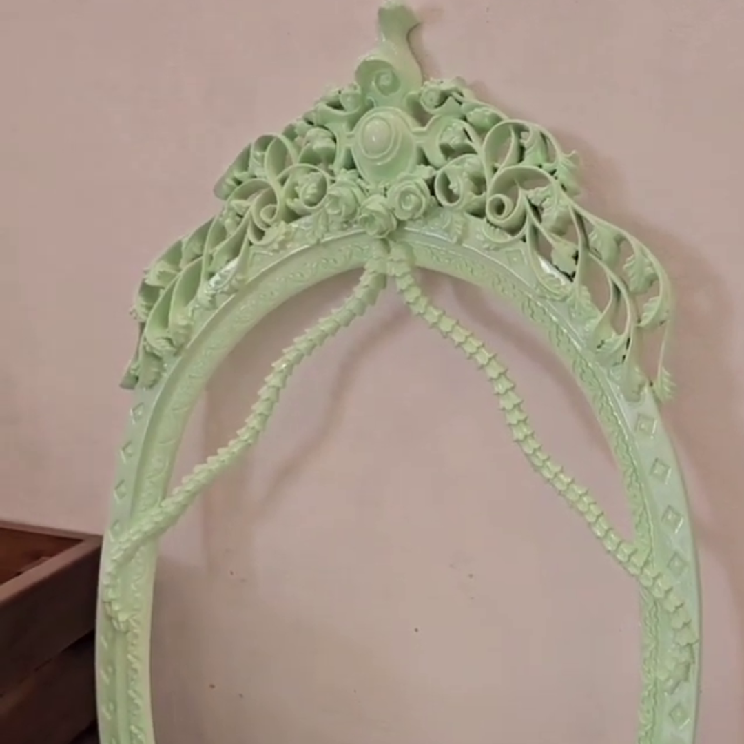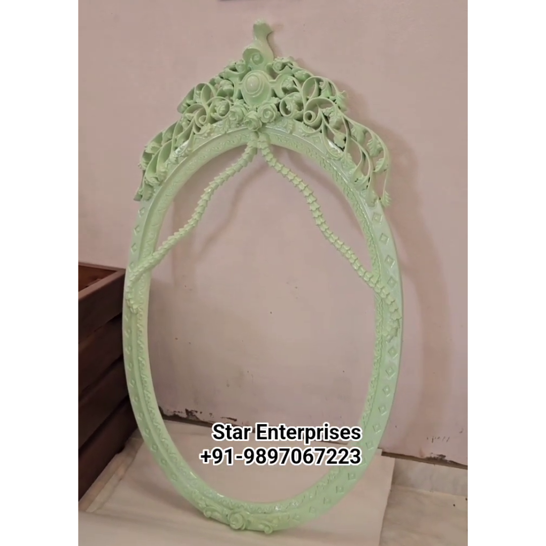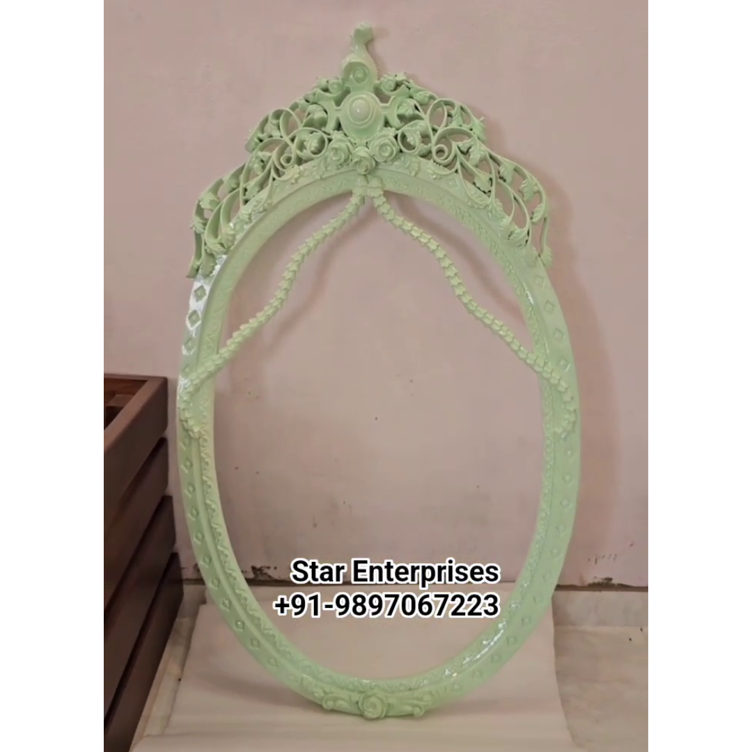 Wooden Classic Mirror Frame by Star Enterprises is an elegant piece of time, made out of high quality teaks to make sure of its longevity and appeal. This mirror frame is designed in a magnificent oval form giving any room a sense of sophistication. The top of the frame has been hand carved and it is very beautiful illustrating the art and workmanship of the talented people.