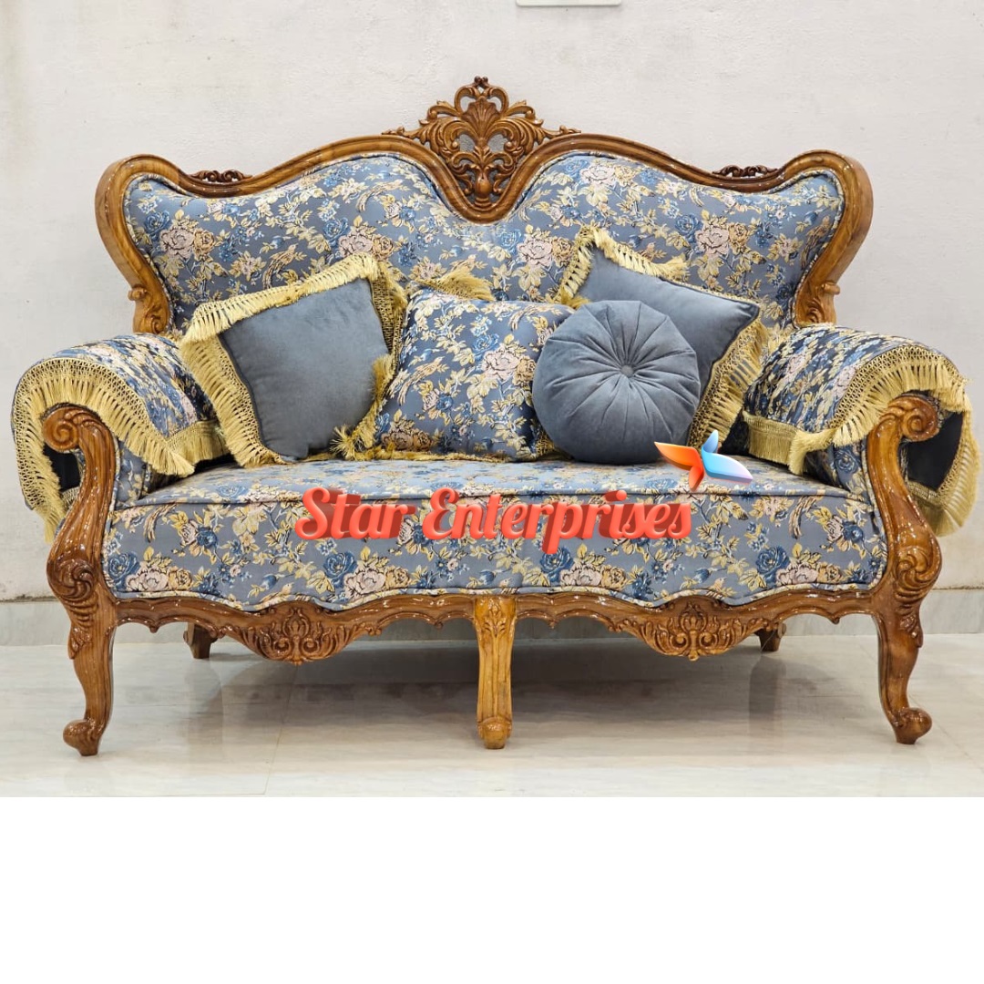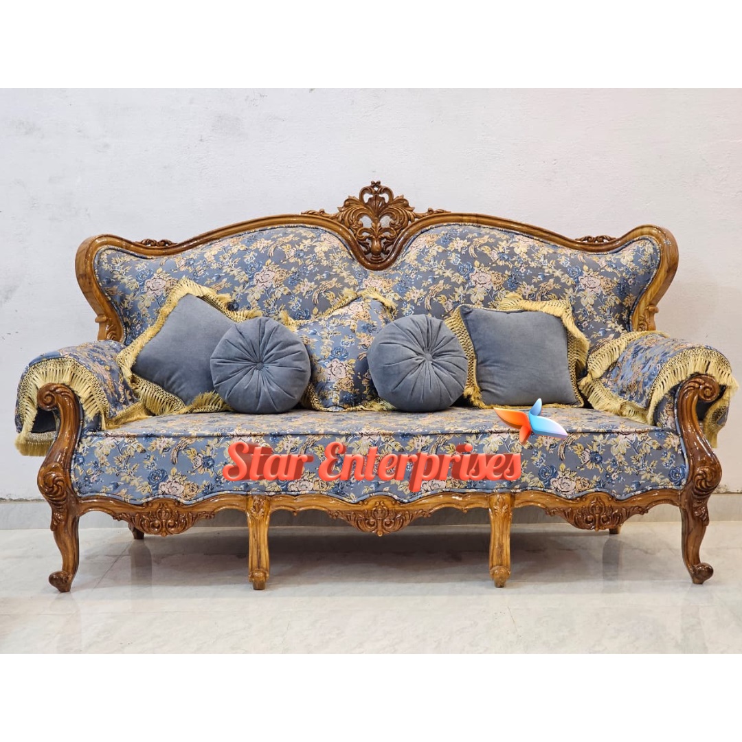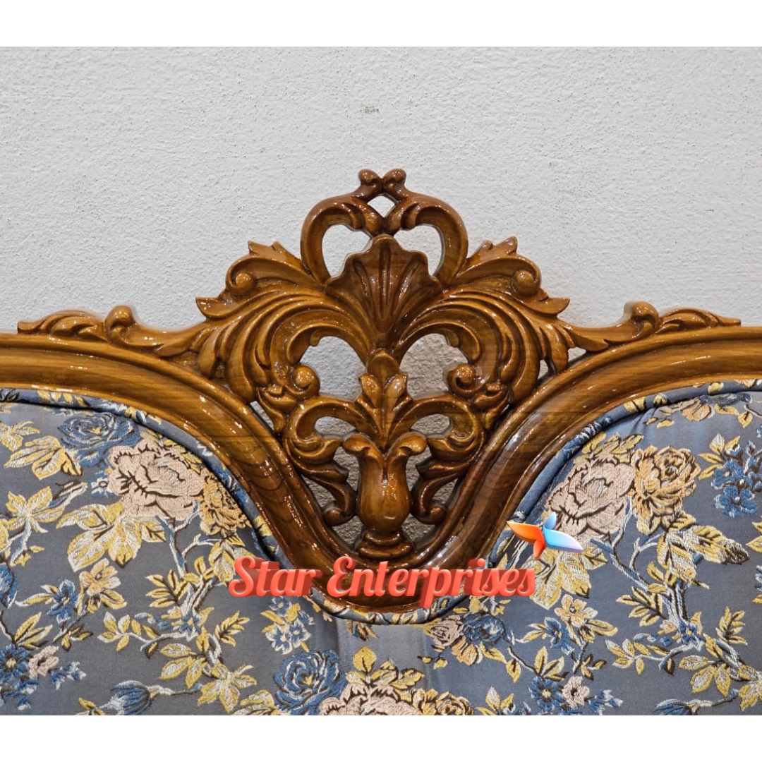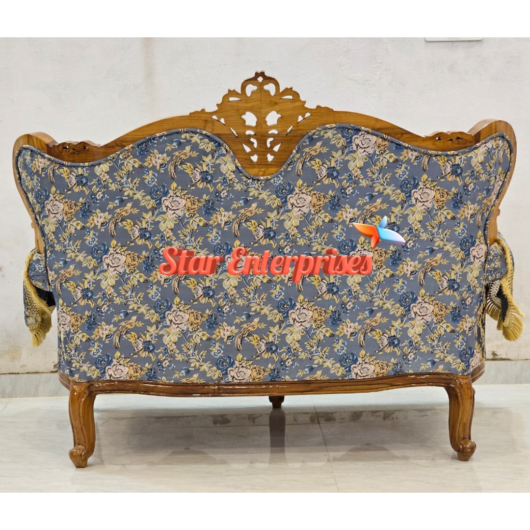 It has 7 seater (3+2+2) layout space which provides plenty of space to sit comfortably. The curvy design at the corner of the sofas are also beautifully curved which gives the overall appearance of the sofa a graceful look. It is decorated with floral and bird-printed furniture that adds beauty and refinement to any domestic environment hence it is worth having in case one considers the classic wooden furniture with the modern design.