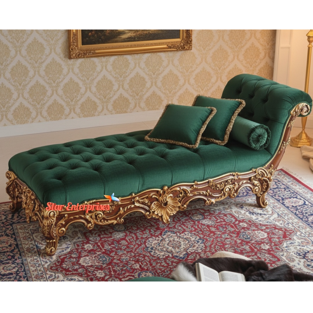 The Wooded Classical Diwan Sofa from Star Enterprises is an all-time masterpiece that symbolises royalty and high quality of workmanship. This diwan is made of high-quality teak wood and features beautiful floral hand carvings made by the skilled craftsmen. The smooth finish of the walls as well as the floor is high-gloss walnut, with a slight addition of gold polish, which gives the appearance depth, shine and a luxurious feel.