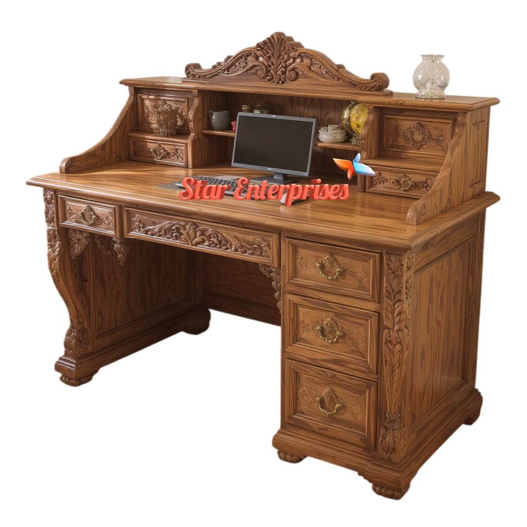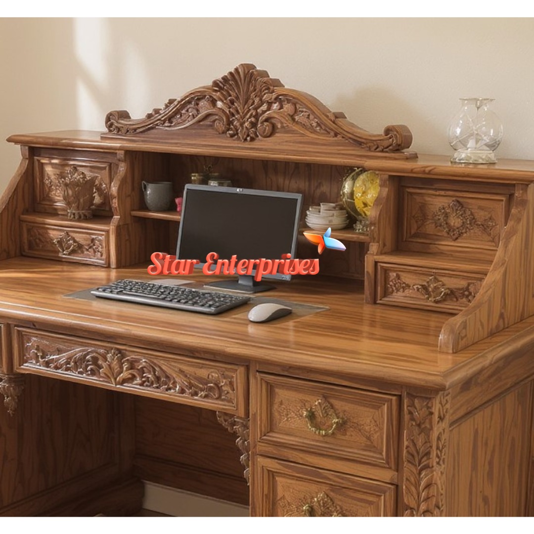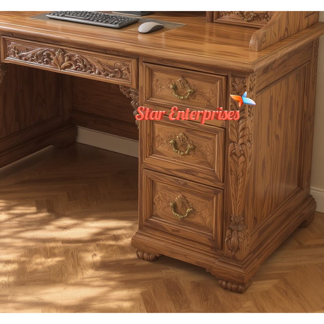 Multiple deep drawers for ample storage space for keeping your study and study material, stationery and important office items at hand. Its blend of durability, style and practicality makes it an excellent option for professionals that value both style and practicality. This traditional office table is not only used to make your workspace better but also gives a royal touch to your office decor.