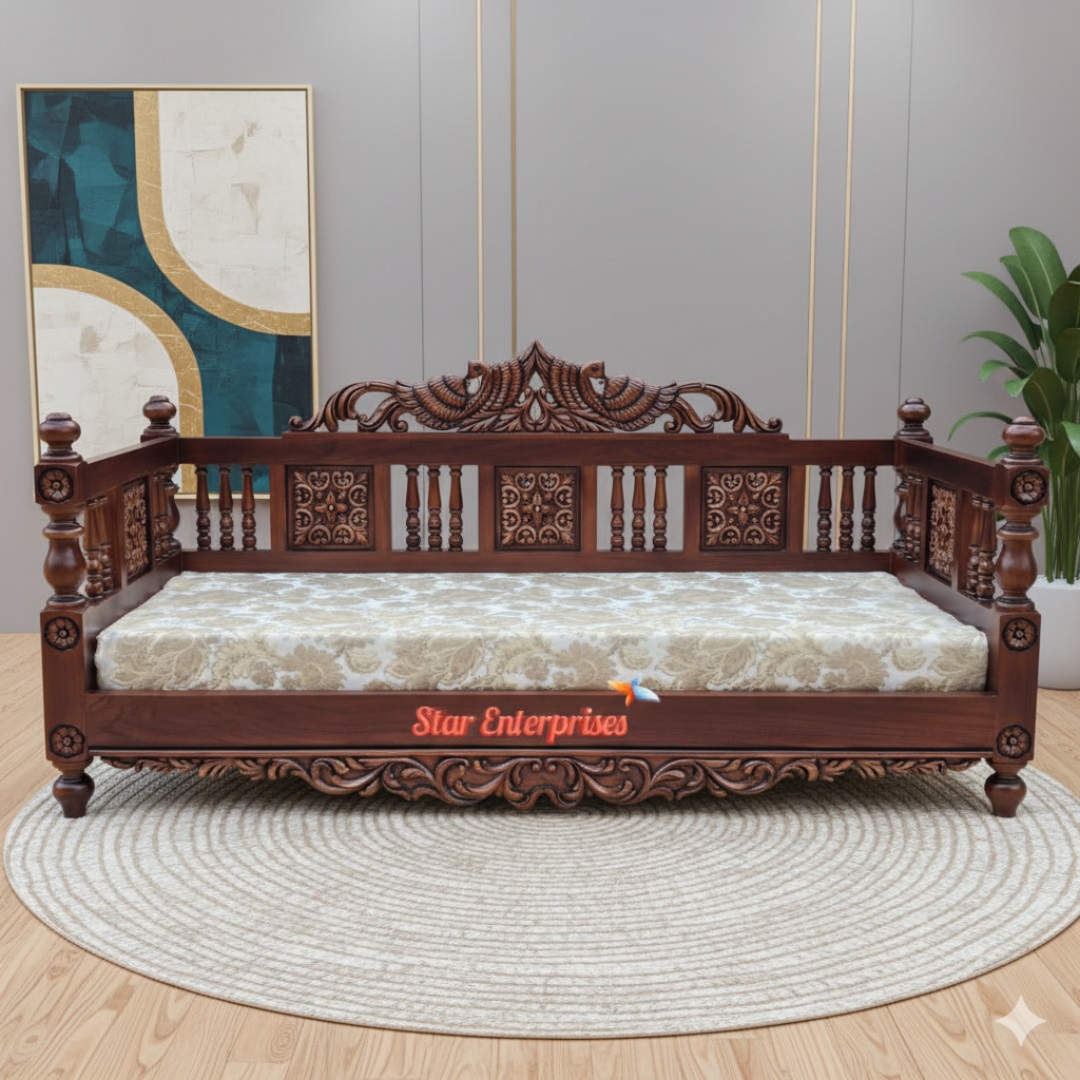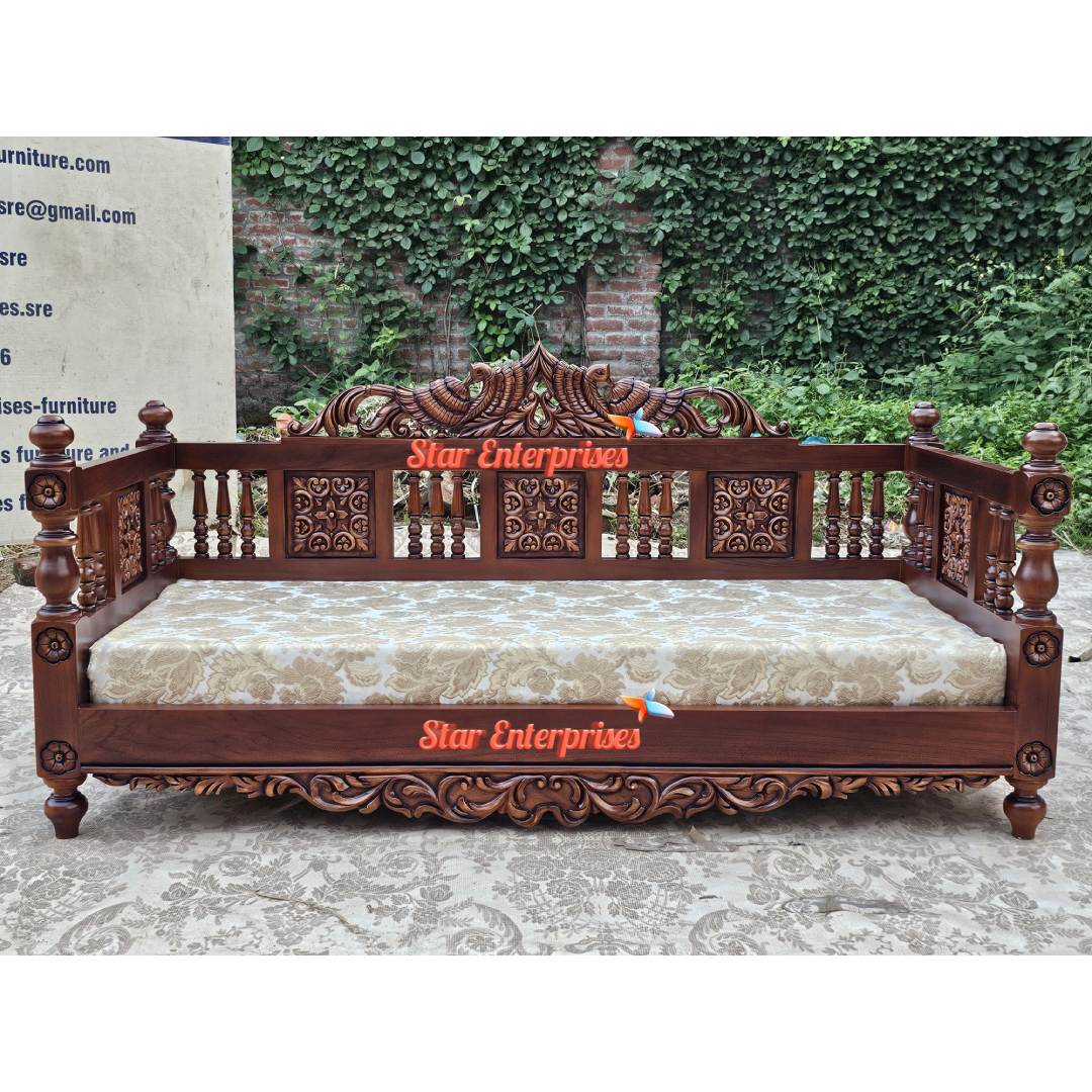 The Star Enterprises Wooden Classical Swing Seat is very beautifully designed wooden swing crafted in teak wood and polish in dark brown color. This particular swing looks graceful and is decorated with flower hand carve work giving it an antique looks and a proper artistry. Above it, two elegantly designed peacock’s image is carved beautifully to give a royal look to the entire thing and give it an artistic look.