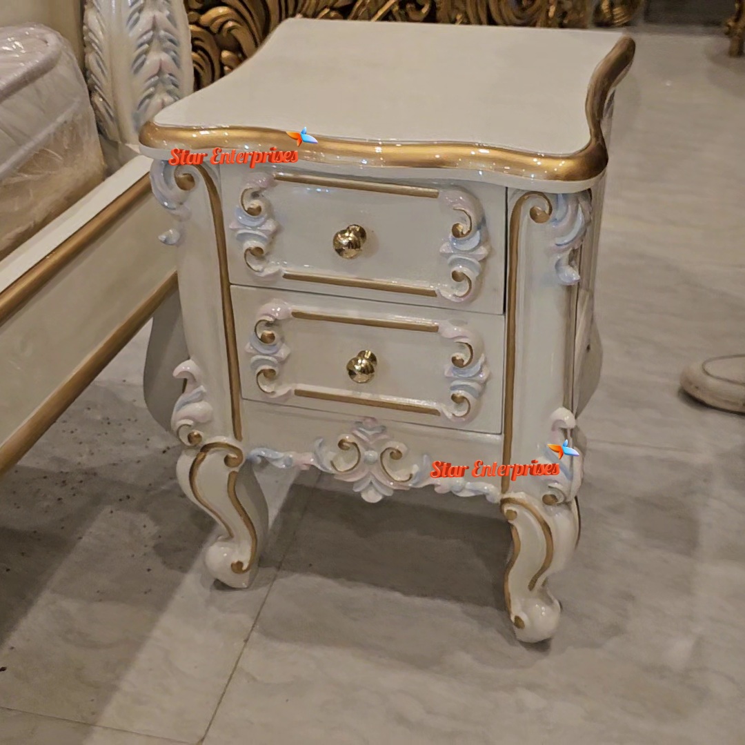 Tags:- Antique Baroque Bed Side TableDesigner Night StandWooden Bed Side Table.