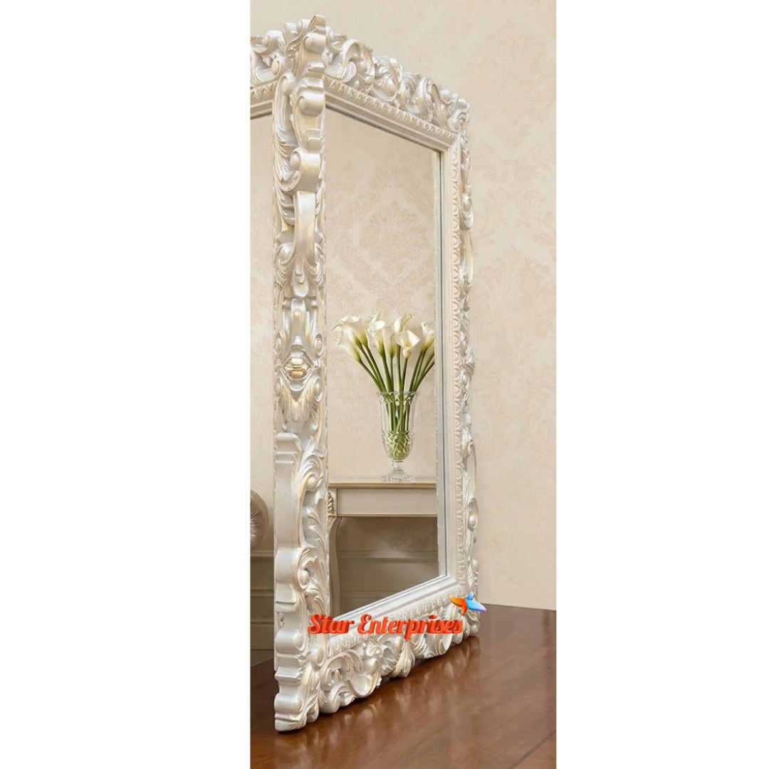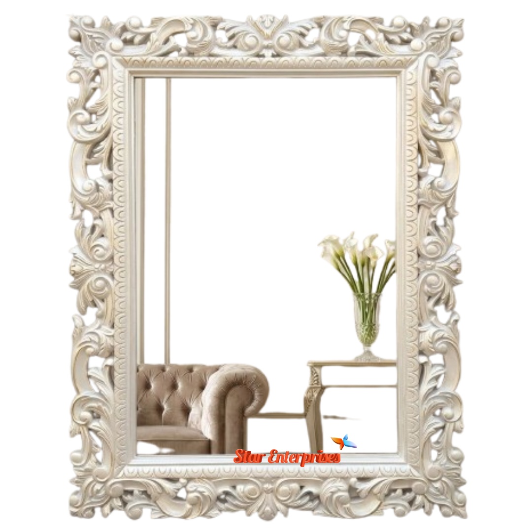 The ivory finish of the Mirror Frame provides a beautiful contrast to the carved motifs, giving a graceful look to the room. This Mirror Frame will look great in living rooms, bedrooms, dressing areas or grand halls, adding a classic look to the room at once. This Wooden Luxury Carved Mirror Frame is a beautiful combination of luxury, elegance and sophistication, making a great statement piece in a room.
