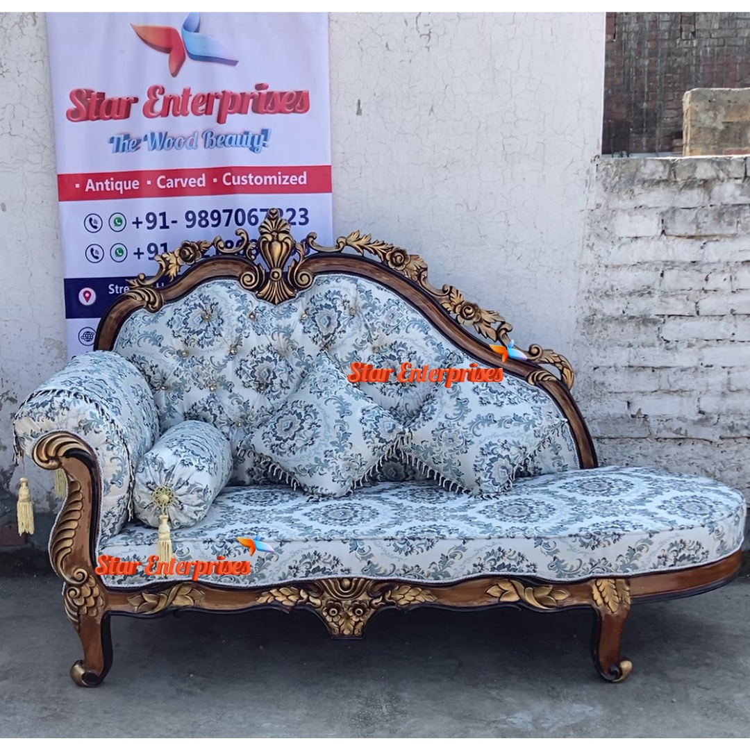 The Star Enterprises Wooden Royal Diwan Couch is a magnificent representation of beauty and skilled craftsmanship. This exquisite diwan is made of the finest quality teak wood that is expertly carved into elaborate floral designs along the frame and polished with a luxurious natural wood finish with hint of gold finish that makes this diwan a royal piece. The backrest is gracefully curved and there is a perfect scrolled armrest that is a wonderful addition giving it a majestic feel and make it an ideal piece of statement to fancy interiors.