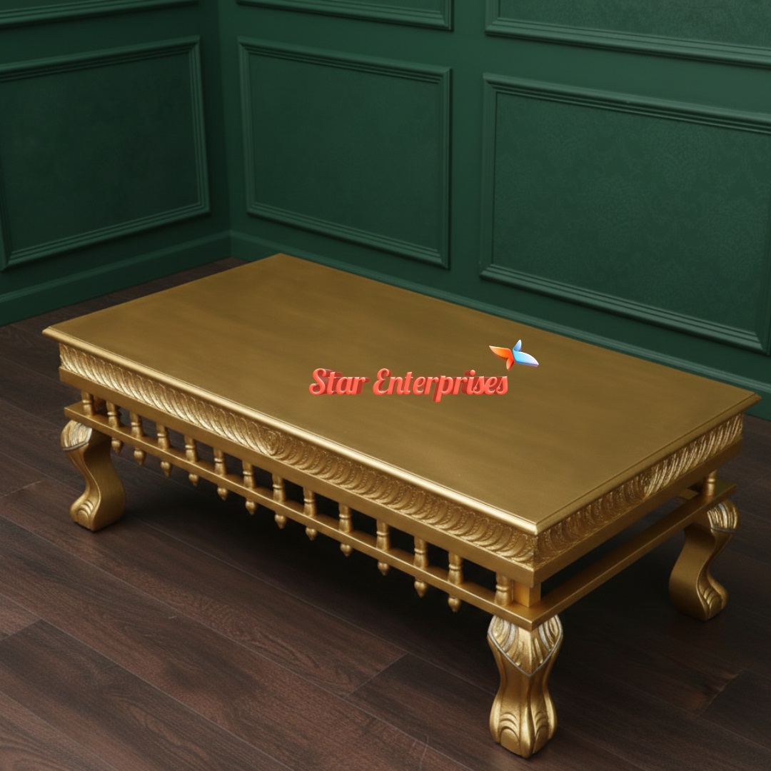 Wooded Royal Handcrafted Center Table by the Star Enterprises is an ideal combination of the luxurious, traditional and the excellent workmanship. This is a high-endurance center table designed in a rectangular shape and made of high-grade teak wood that demonstrates a fine level of durability and the levels of resistance over time. The table is beautifully hand-carved with beautiful detailing on the sides and legs, with a royal touch and use of artistic skills.