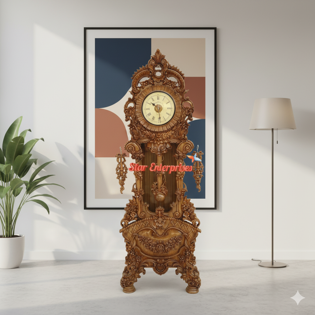 It has the most elegant round dial, accompanied by a pendulum, adding elasticity between form and aesthetic. Towering this clock is not only a real clock but also an elegant accent in interior design as well. Perfectly suitable for classic or antique environments, enhancing the look and feel of any living space. The Star Enterprises Grandfather Clock has a perfect finish and has delicate workmanship that makes it appropriate as a family treasure.