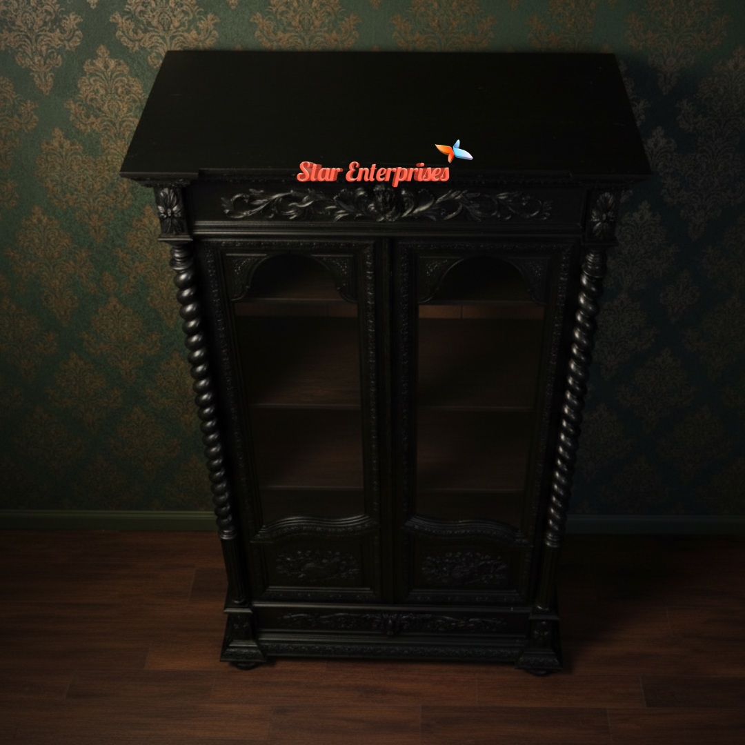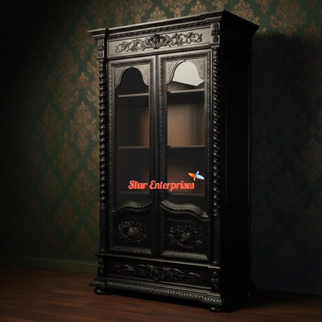 The design of the Wooden Victorian Style Bookshelf by the Star Enterprises is an ideal mixture of vintage beauty and contemporary design. This bookshelf is made out of high quality teak wood and is constructed as a durable and timeless masterpiece. It is painted in gorgeous high-gloss black finish, which adds the royal Victorian touch.
